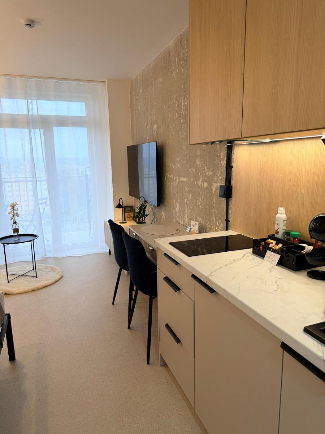 One-Bedroom Apartment. The apartment features 1 bedroom and 1 bathroom with a shower and free toiletries. Guests can make meals in the kitchen that comes with a stovetop, a refrigerator, kitchenware and a microwave. This apartment has a washing machine, soundproof walls, flat-screen TV with streaming services, as well as chocolate for guests. The unit offers 2 beds.