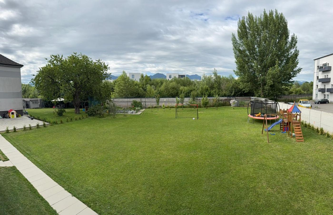 Outdoor play equipment is also available at the apartment, while guests can also relax in the garden.