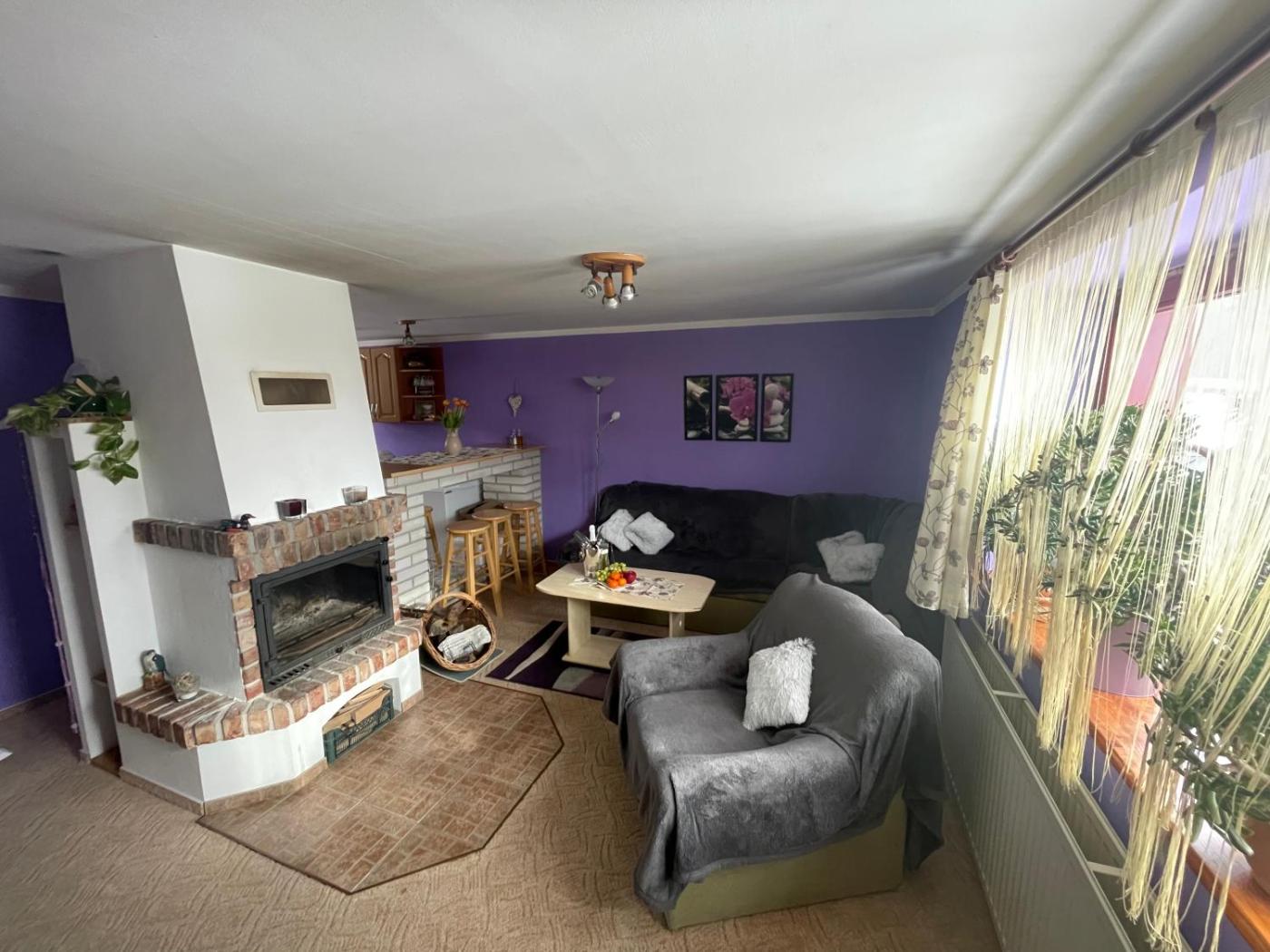 Two-Bedroom House. This holiday homes standout feature is the fireplace. Boasting a private entrance, this holiday home includes 1 living room, 2 separate bedrooms and 1 bathroom with a shower. In the well-equipped kitchenette, guests will find a stovetop, a refrigerator, kitchenware and a microwave. Featuring a terrace with mountain views, this holiday home also offers a tea and coffee maker and a flat-screen TV with cable channels. The unit has 7 beds.